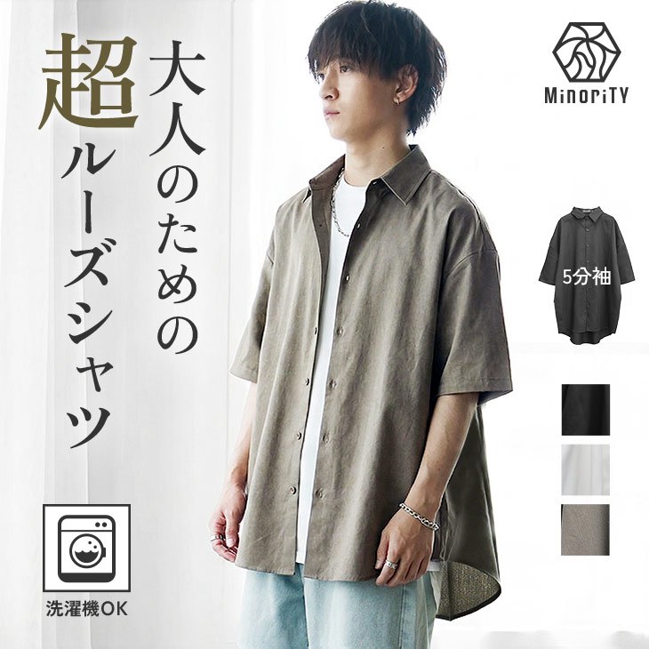 裾ラウンド5分袖ルーズシャツ
