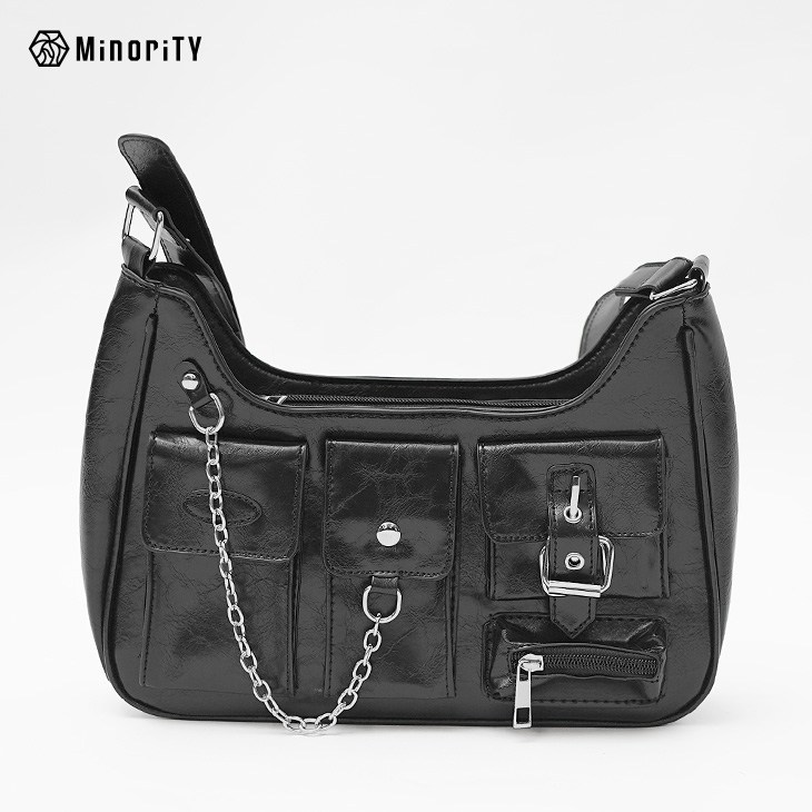 ユーティリティチェーンPUレザーショルダーバッグ
