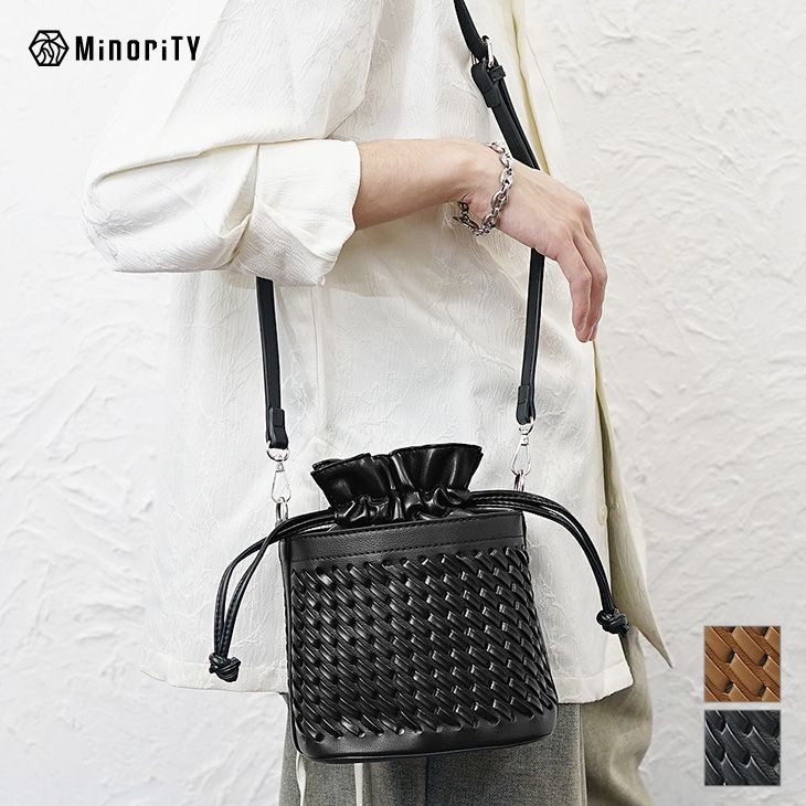 PUレザー巾着ショルダーバッグ