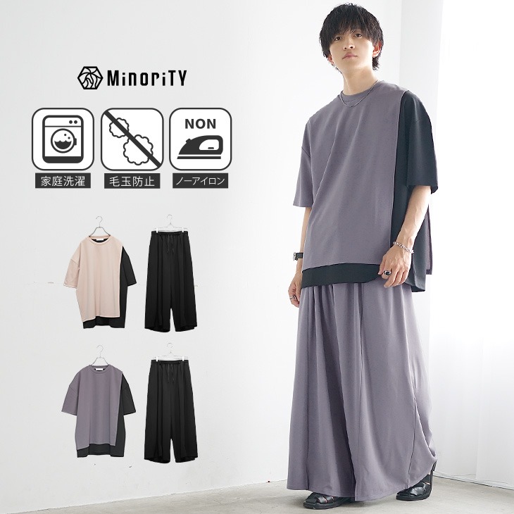 梨地アシンメトリーバイカラーTシャツ
