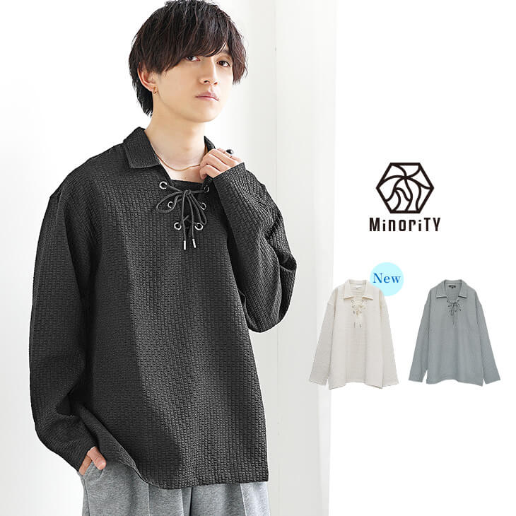 【送料無料】シアサッカーレースアップポロシャツ