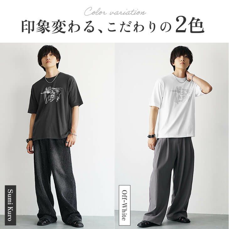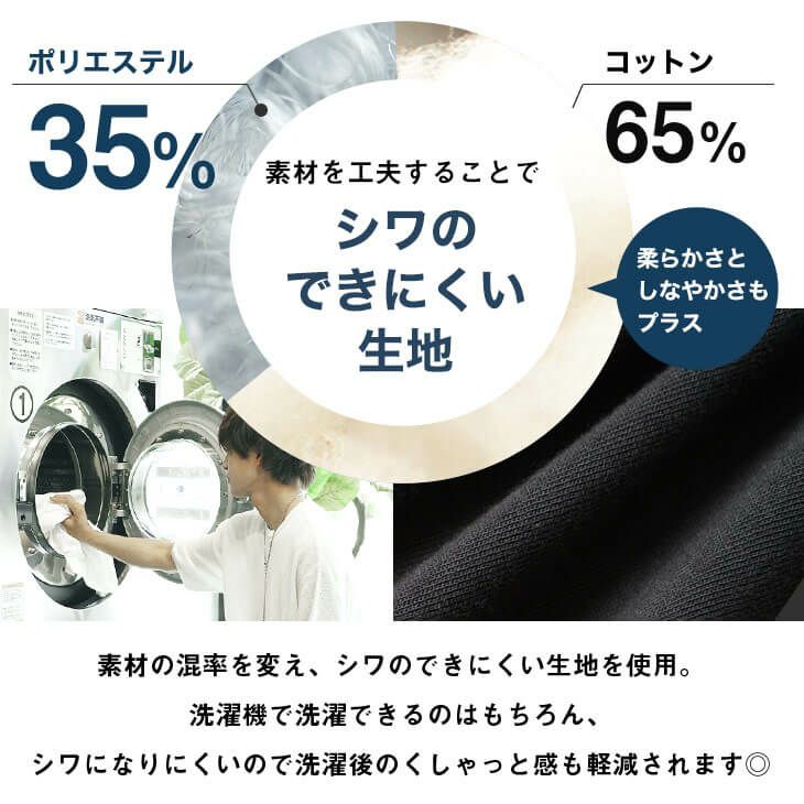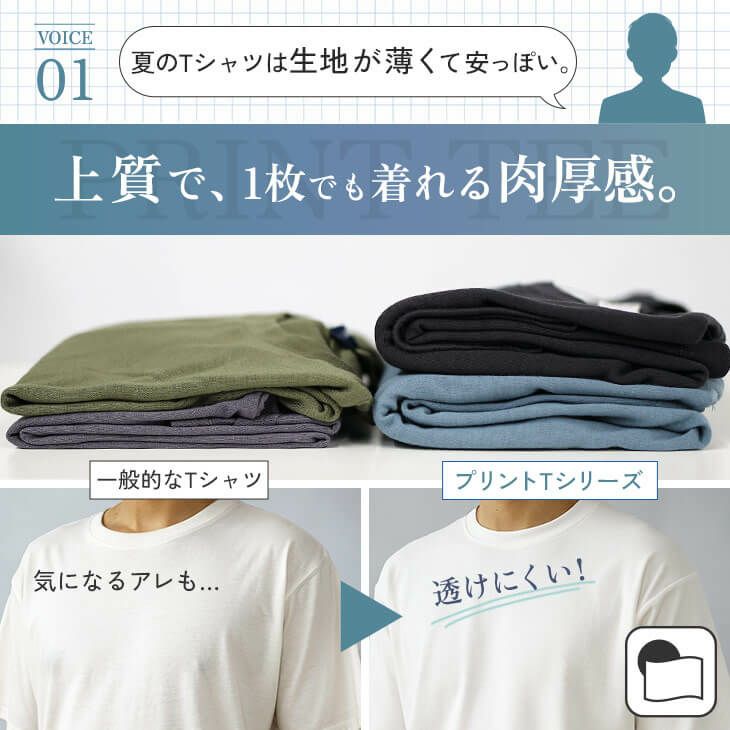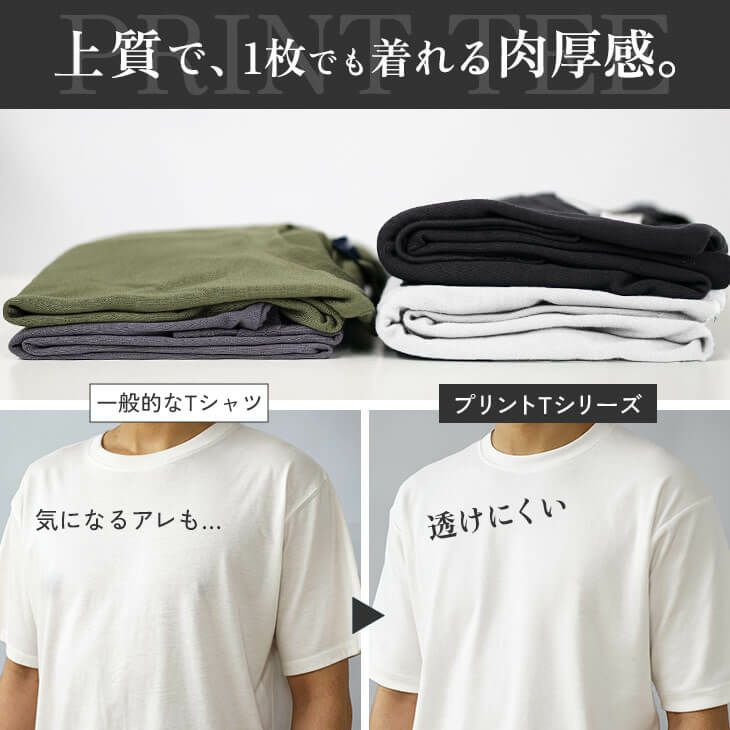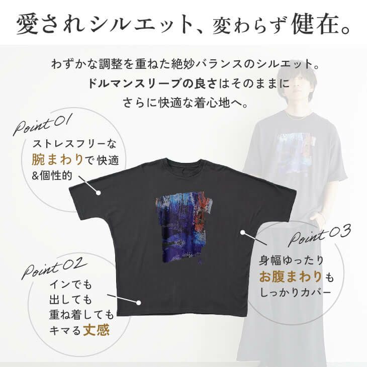 コットン(綿100%)やポリエステル、レーヨンなど様々な素材が用いられ、色も黒や白、グレーからビビッドなカラーまで幅広いバリエーションがあります。 また、デザインもシンプルなものから夏に嬉しい接触冷感のTシャツ、ビッグTシャツ、ドルマンTシャツ、ボーダーTシャツなど数々取り扱い中。