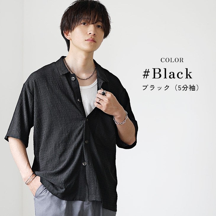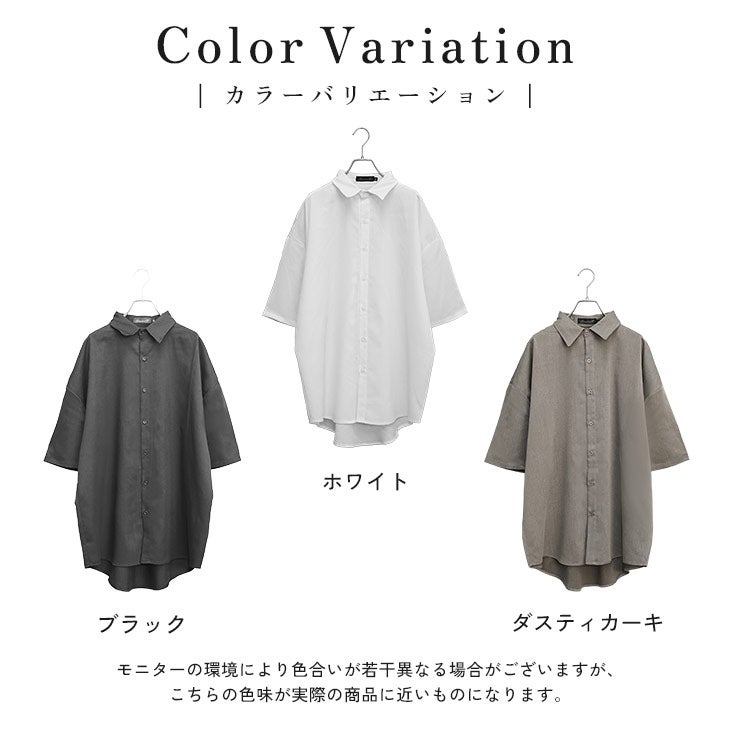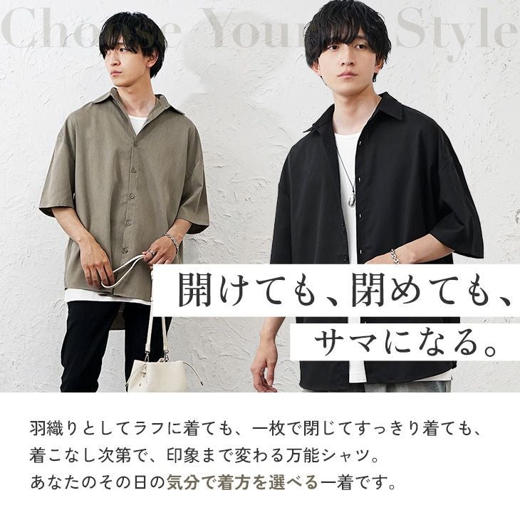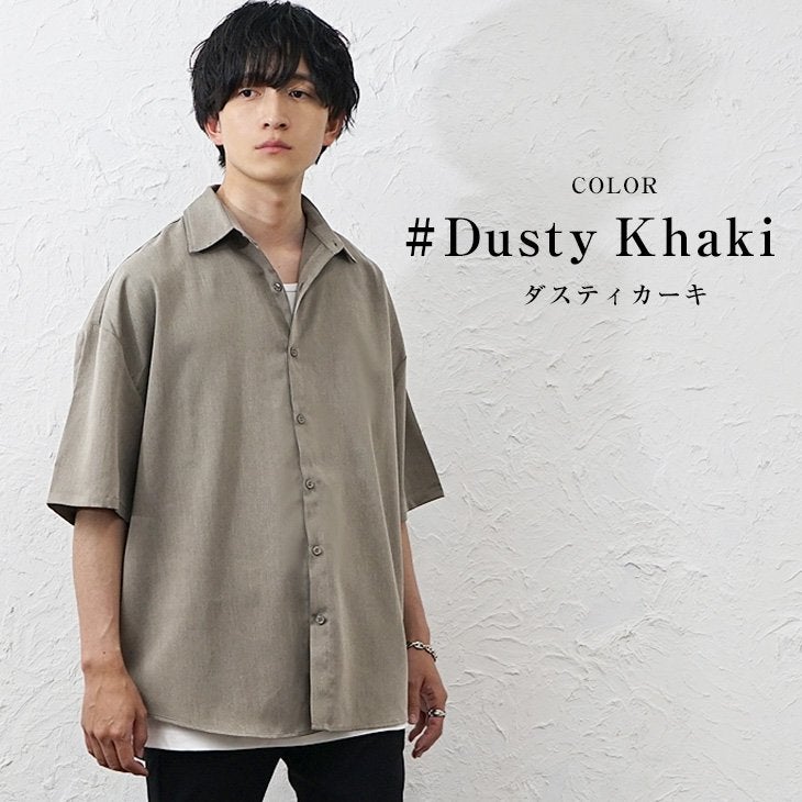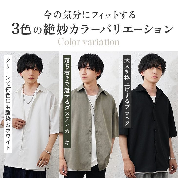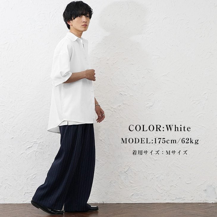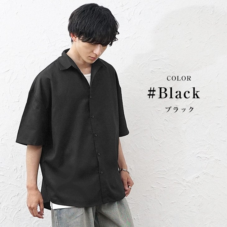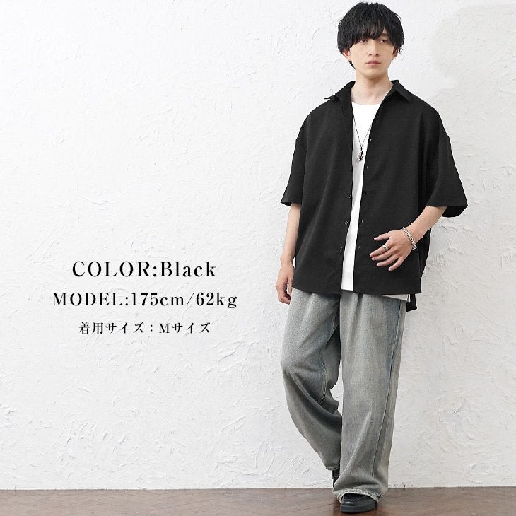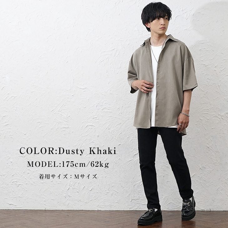【送料無料】落ち感素材ビッグドルマンシルエット5分袖シャツ