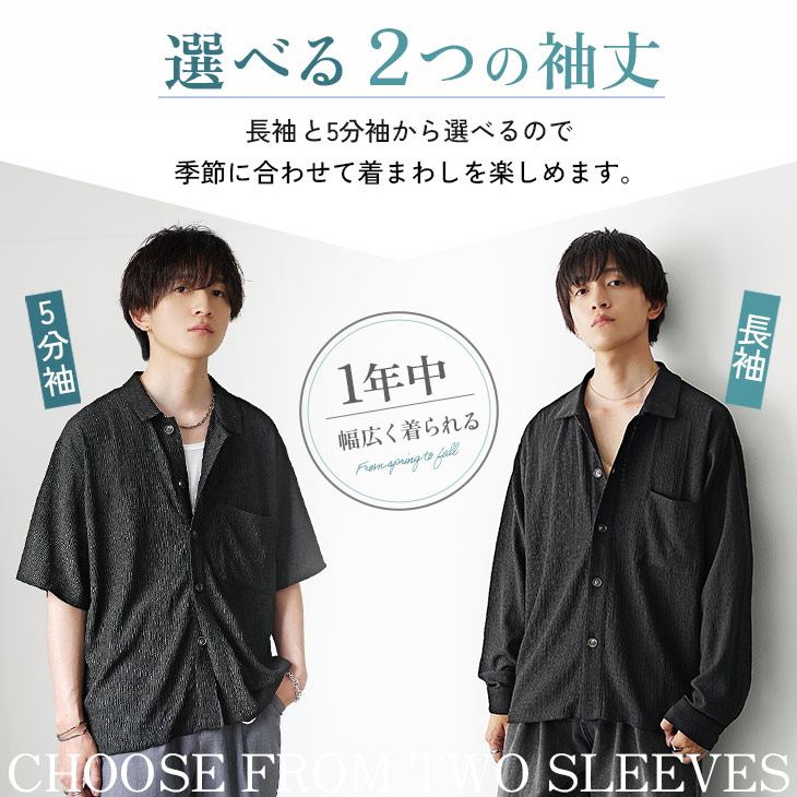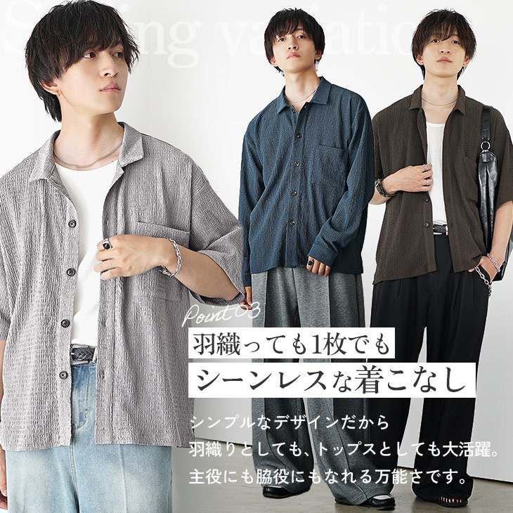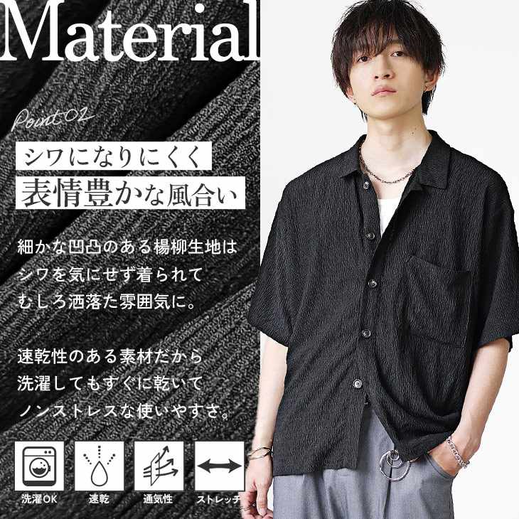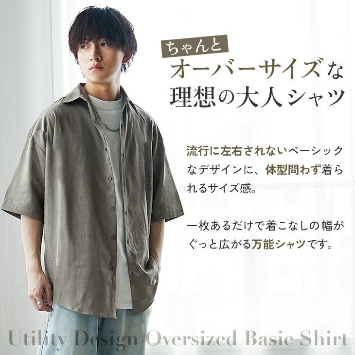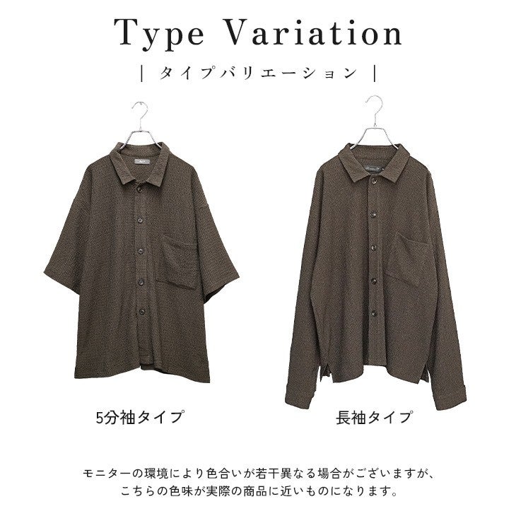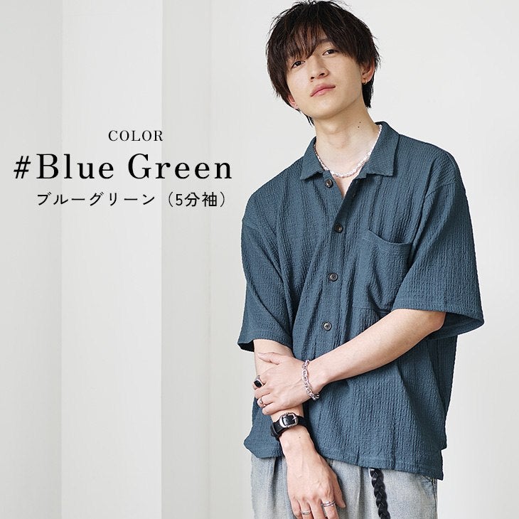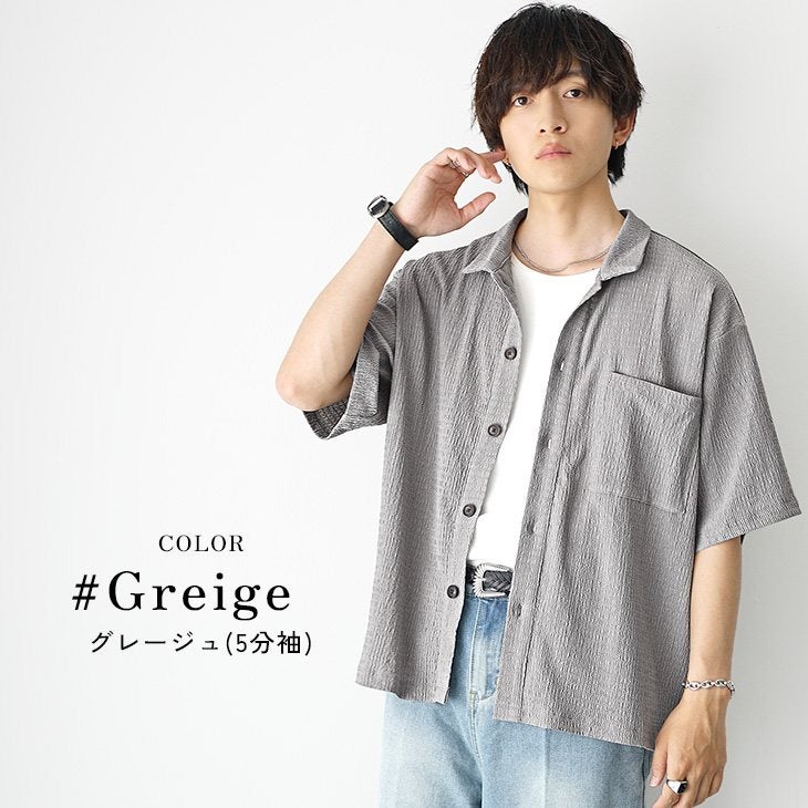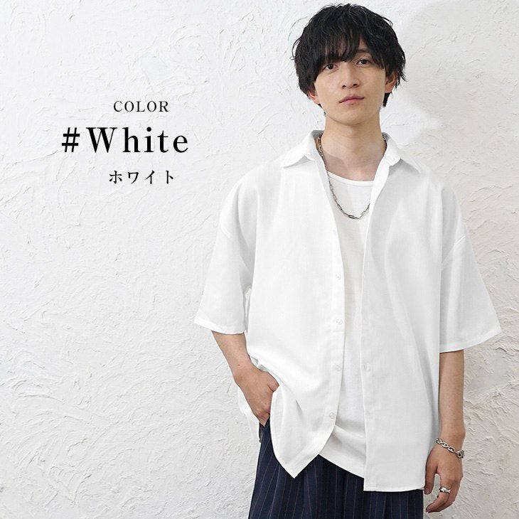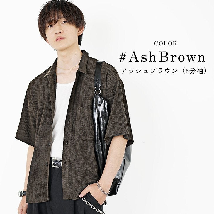 【送料無料】落ち感素材ビッグドルマンシルエット5分袖シャツ