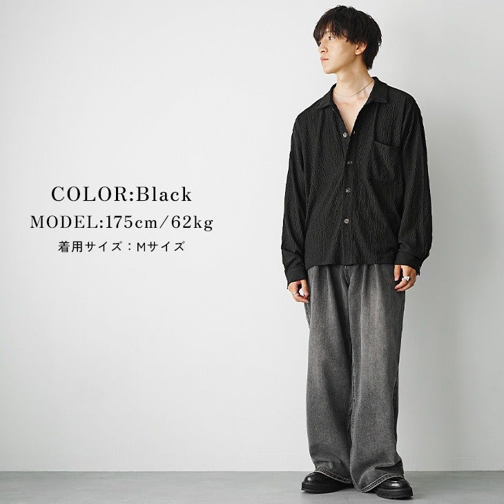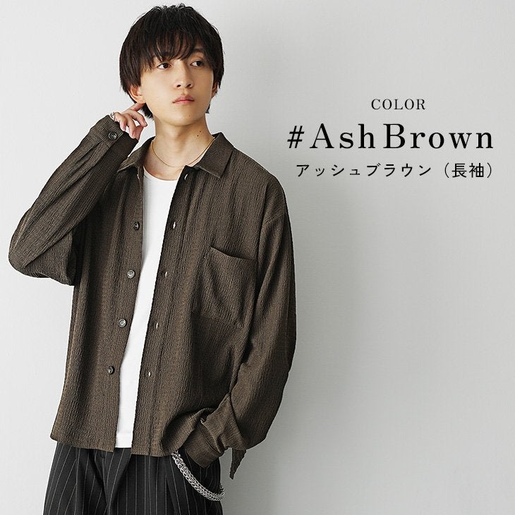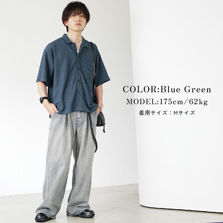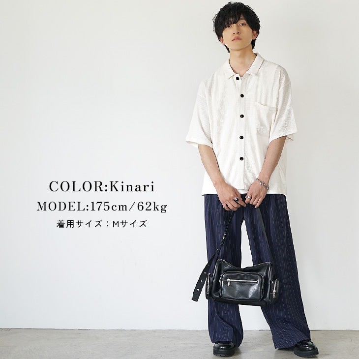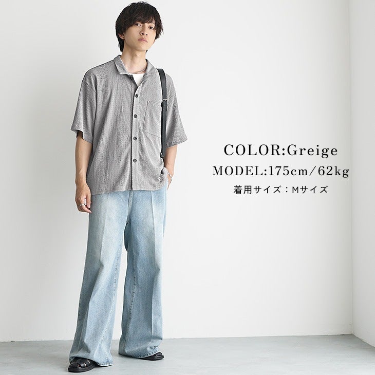 梨地レギュラーカラービッグ半袖シャツ