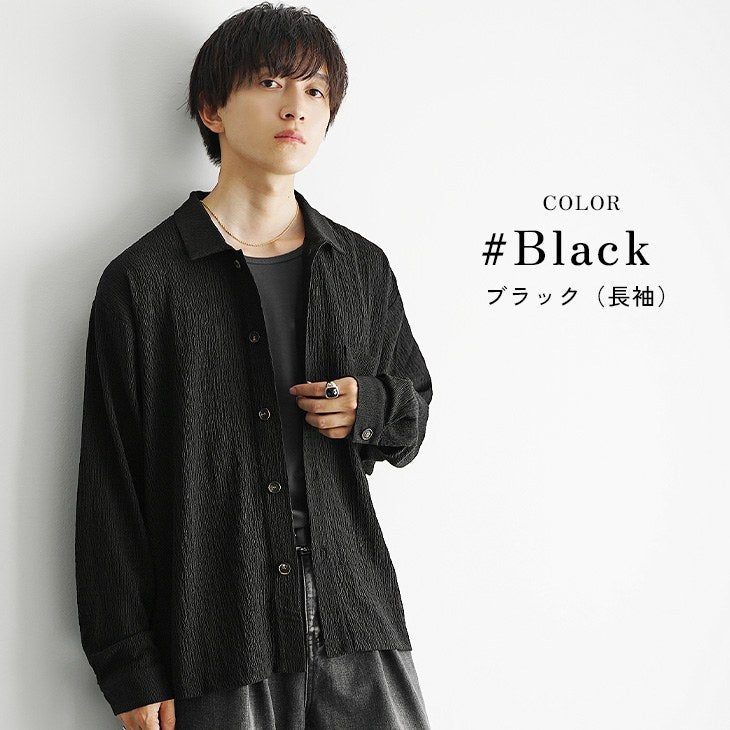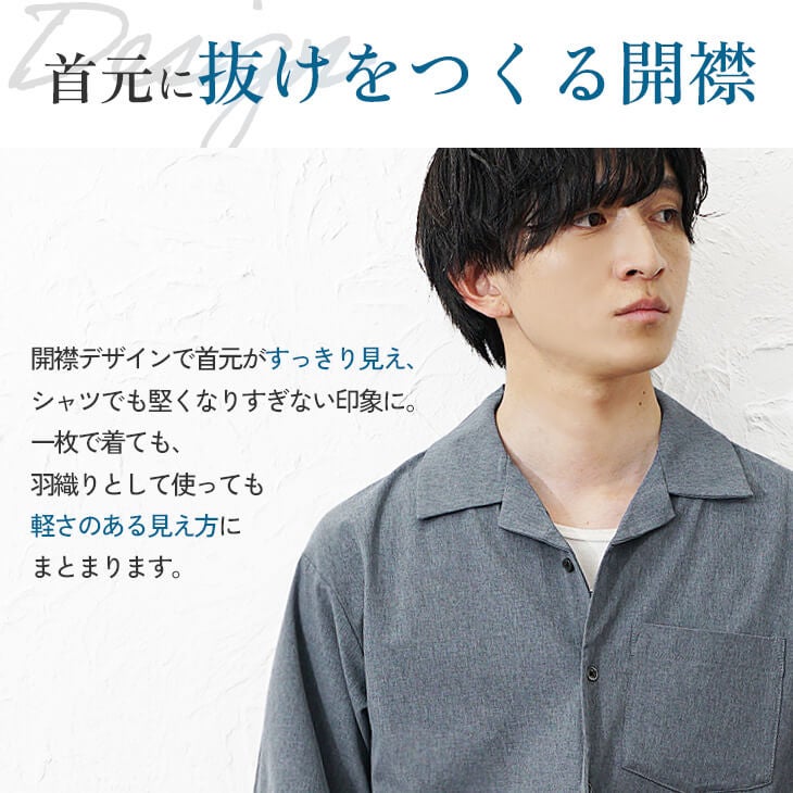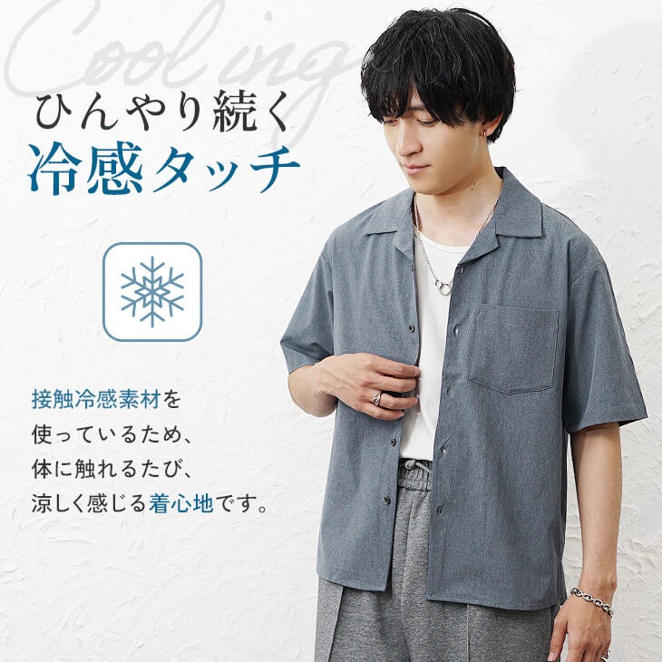 接触冷感素材リネンライククールオープンカラーシャツ