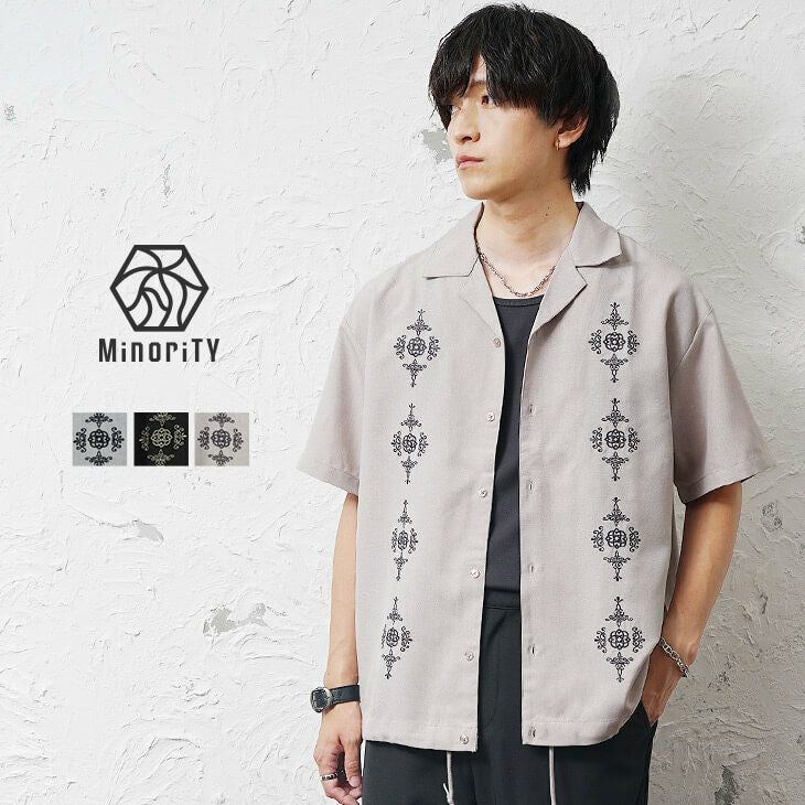 フロントの両サイドにエスニックな刺繍を施したキューバシャツ。