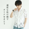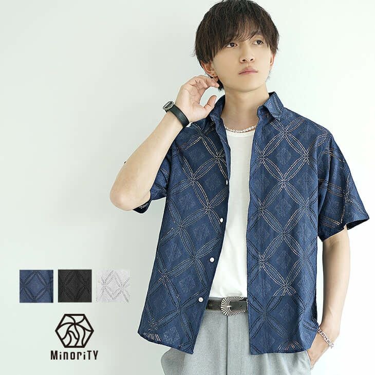 レース素材を使用し、程よい透かし編みのデザインにすることでヘルシーな肌見せに抑え大人の色気を演出する軽快な印象の半袖シャツ。インナーを透かすことで浮かび上がる幾何学模様はシンプルながらも目を惹く存在感を放ちます。味気なくなりがちな夏のコーデにサッと羽織るだけでインパクトをもたらす優れものです。