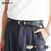 【ウエスタンPUレザーベルト】●DESIGN(デザイン)「しなやかな上品さを」柔らかなPUレザーを使用した、しなやかな質感のナローベルト。ウエスタンベルトのような剣先やバックルを取り入れ、シンプルながらも「魅せる」デザインに。ベルト穴も14個と多く、細身の方でも安心して使用でき、細かなサイズ調整も可能です。