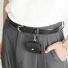 小物の収納に便利なミニバッグ付きのナローベルト。ベルトはシンプルなデザインで、コーディネートの邪魔をしないミニマルさが特徴です。ミニバッグはイヤホンケースがちょうど入るサイズ感で、ポケットに入れがちな小物をすっきりと収納できます。