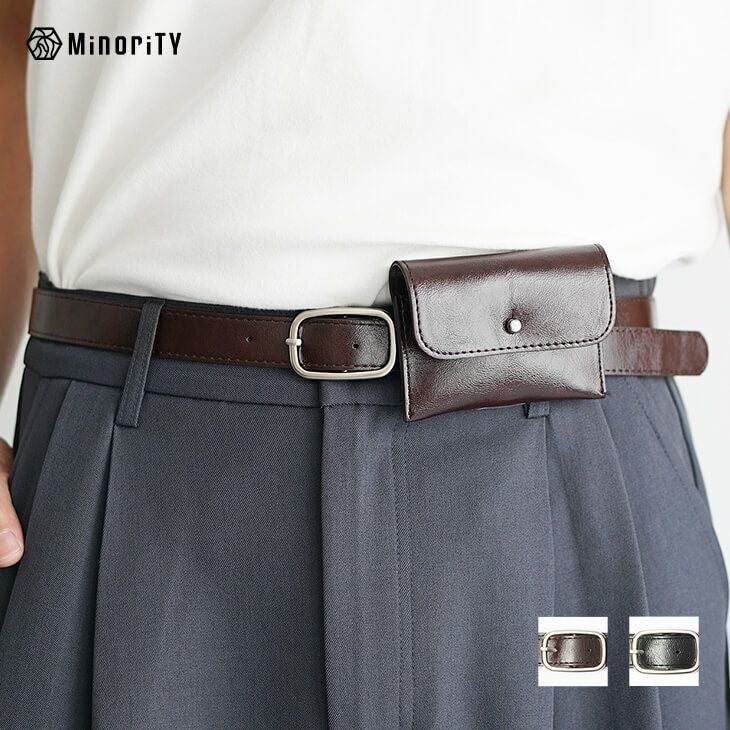 シンプルなナローベルトにサイドポーチが付属したミニマルなベルト。幅広めのポーチには標準的なICカードがすっぽりと入るサイズで使い勝手も抜群。体に近いところで管理できるので安心感もあるアイテムです。