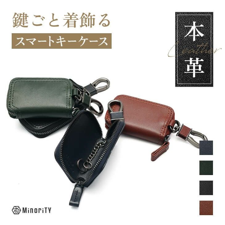 使い込んでいくうちに味が出てくる本革を使用したキーケース。厚みは約1.5cmで重さもおよそ50gと非常にコンパクトな作りに。鍵をかけるチェーンはやや長めの設計になっており、チェーンを外に出して使用する際に便利な仕様に。また程よく厚みを持たせているので、車などのスマートキーも収納できるアイテムです。