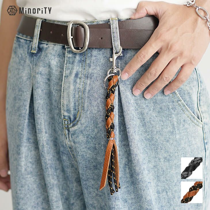 【パラコードキーフック】●DESIGN(デザイン)「さり気ないプラスワン」パラシュートなどに使われるような強靭さが特徴的な丸紐とレザーを編み込んだ、デザイン性抜群のキーフック。コーデにアクセントをプラスする小物としても、実際に鍵を取り付けて使用できるアイテムです。