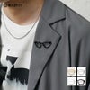【メタルデザインブローチ】●DESIGN(デザイン)「いつものコーデにプラスのアクセント」メガネをモチーフにしたデザインのブローチ。ジャケットのラペルなどはもちろん、Tシャツやシャツコーデのアクセントとして使いやすいアイテムです。安全ピン式なので着脱も容易に行うことができるのも嬉しいポイントです。