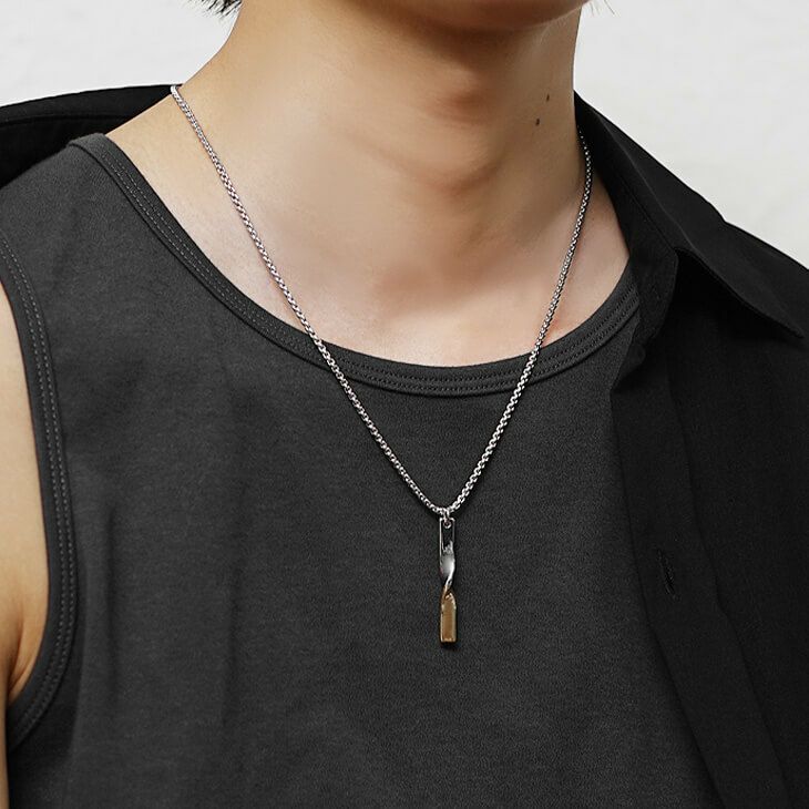 Tバーヘリックスボールドチェーンネックレス【メール便送料無料】