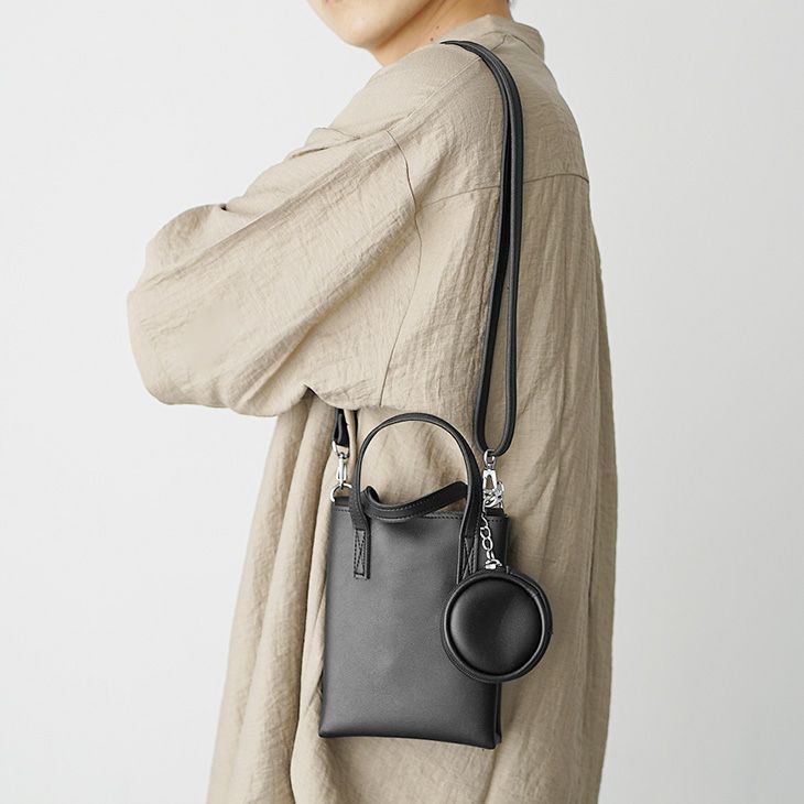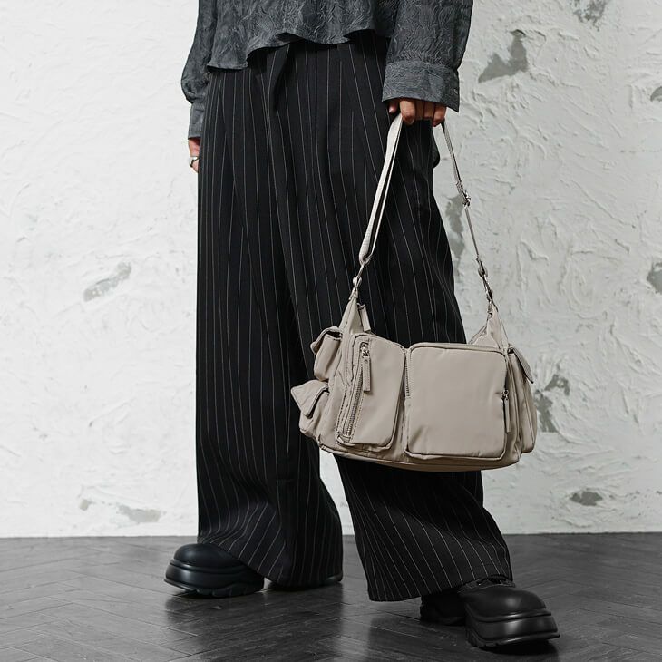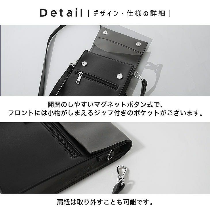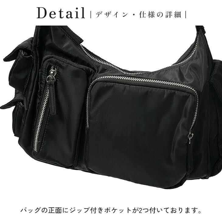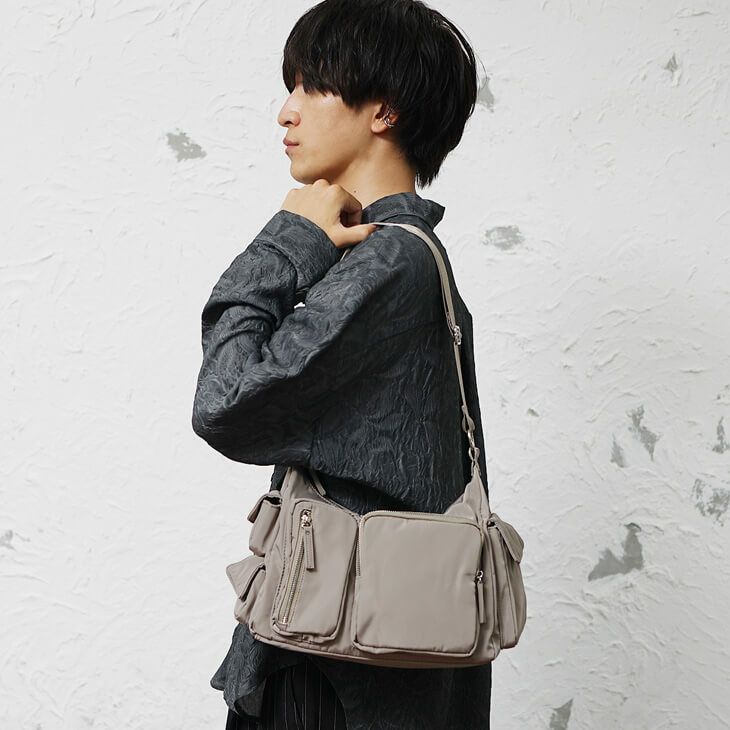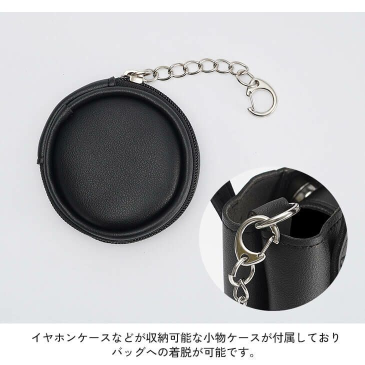 スムースフェイクレザーサイドファスナーショルダーバッグ