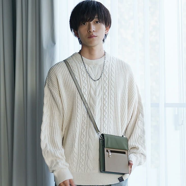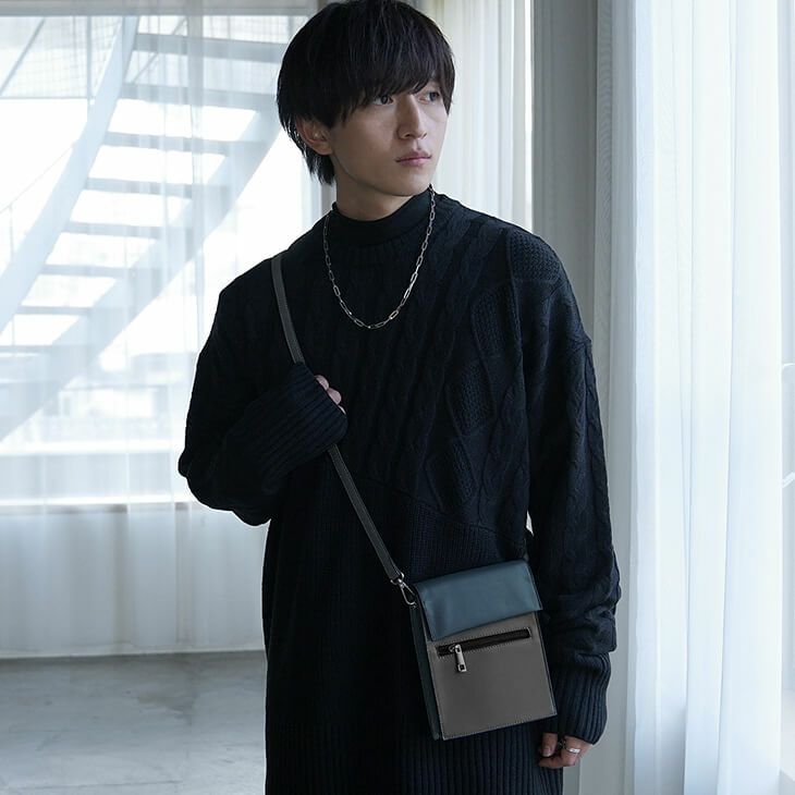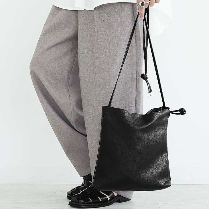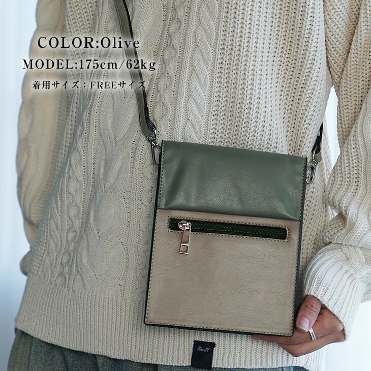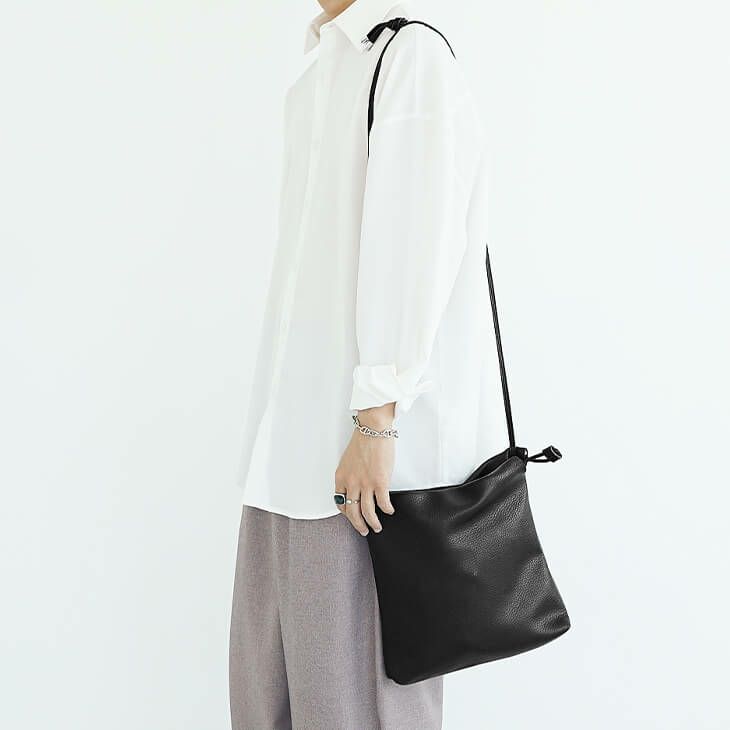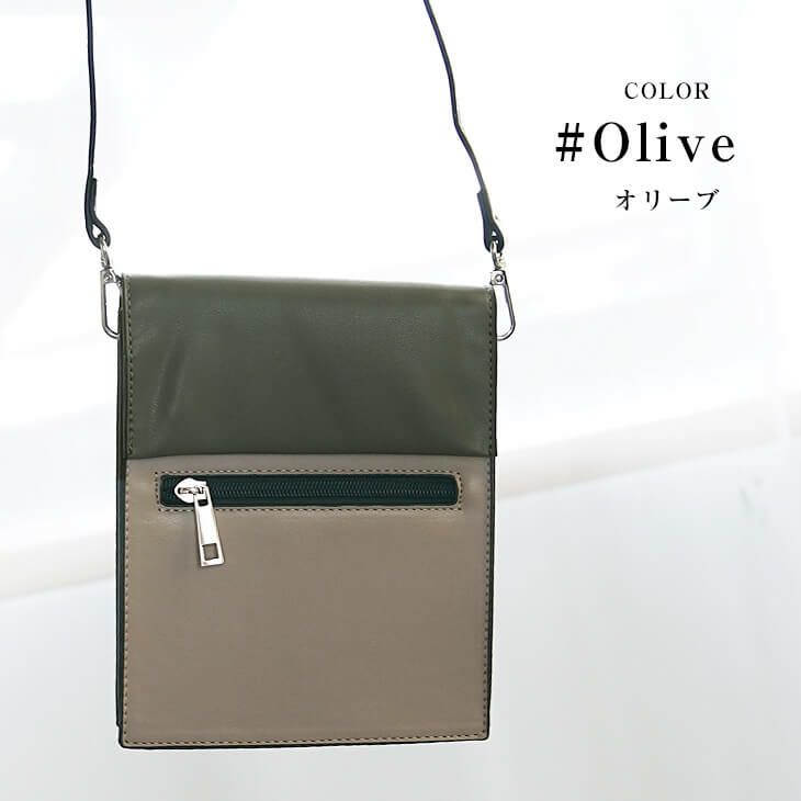 スムースフェイクレザーサイドファスナーショルダーバッグ