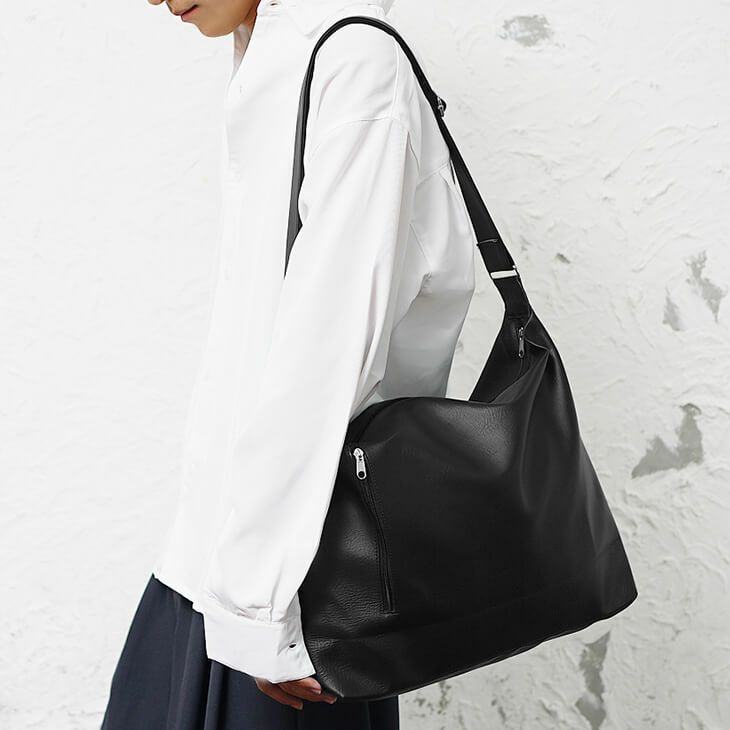 【送料無料】シンセティックレザービッグショルダーバッグ