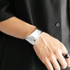 【ワイドウェーブカフ】●DESIGN(デザイン)「大胆にきらめいて」大ぶりのデザインが目を惹く、カフブレスレット。波打ったデザインが独特のきらめきを放ち、華やかな印象を与えます。シンプルなコーデのアクセントにぴったりのアクセサリーです。