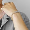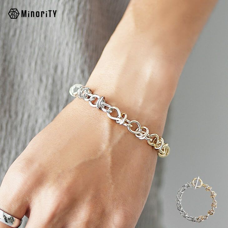 【チェーンノットコンビチェーンブレスレット】●DESIGN(デザイン)「深みのある複雑な輝き」チェーンノット(鎖結び)のデザインとシルバー×ゴールドの2つのキラメキが特徴的なブレスレット。ねじりが入っているので光をランダムに反射し、豊かな表情を作り出します。