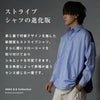【バイパターンドロストビッグシャツ】表と裏で大胆に切替デザインが施された新感覚のストライプシャツ。裾に付いているドローコードを絞れば、シルエットを変えて着用することも可能な一枚。見る角度によって異なった表情を見せてくれるセンスを感じるアイテムです。