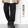 ゆったりと穿けて着脱が容易なウエストゴムを採用したワークパンツ。太ももやお尻周りはワイドな作りながらも足首に向かって徐々に細くなるワイドテーパードシルエットを採用し、すっきりとした印象に。ラク穿きと美しいシルエットを実現したボトムスです。