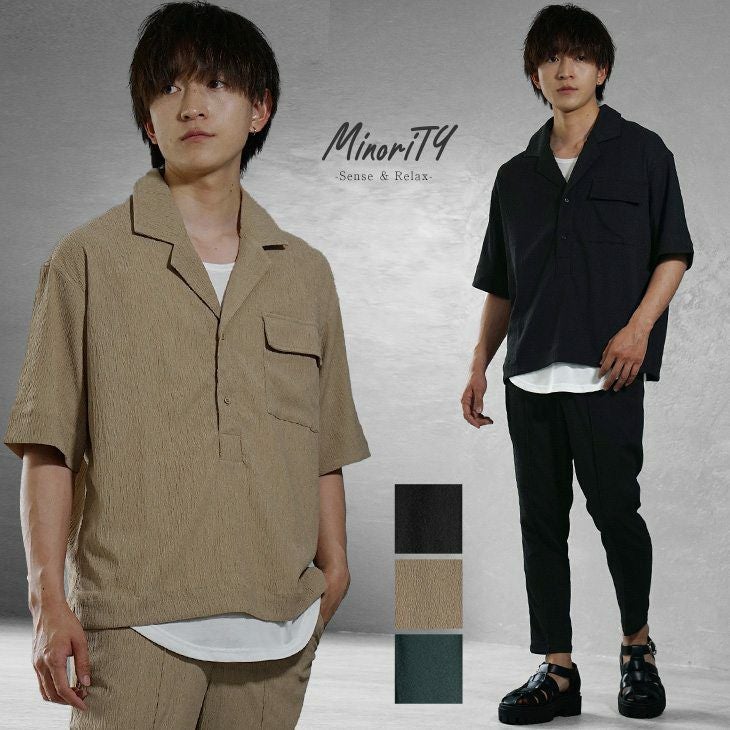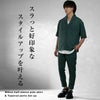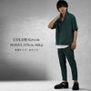 トップスは綺麗めカジュアルな開襟ポロシャツ、ボトムスには細身のアンクルパンツを用いることで、程よくゆとりはありながらも細見え効果が抜群の仕様に仕上げました。