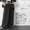 サイドのラインデザインとジャケットの深いサイドスリット、さらにボトムスのタックが作り出す立体感が印象的なセットアップ。ジャケットとスラックスというきれいめな印象のセットアップながらも、ゆったりとしたサイズ感にすることで、かっちりとし過ぎずカジュアルな印象に。上品さとリラックス感を兼ね備えた一着持っておきたい半袖のセットアップです。