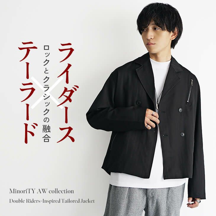 【送料無料】ヘリンボーンストライプダブルテーラードジャケット