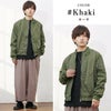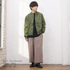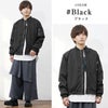 【アシンメトリーMA-1】襟元にフェイクのリブが取り付けられたひとクセある唯一無二なデザインのMA-1。バックの右肩部分にもレイヤードが施されており、前と後ろでも違った印象を与えます。素材はガシガシ使えるポリエステル100%。軽い素材なのでさらっと羽織ることのできるライトアウターに仕上がりました。