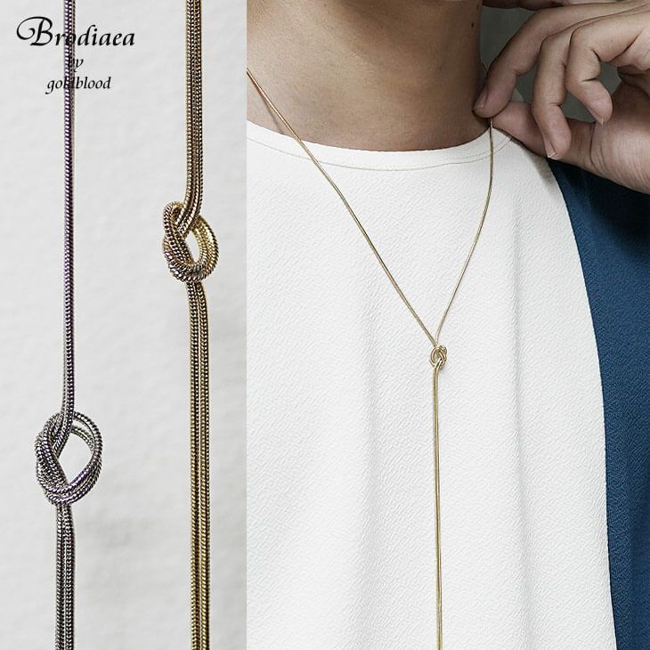 【タイニーループタイネックレス】細身のスネークチェーンを結んだ繊細さ際立つネックレス。その華奢な見た目には派手さは無く、ささやかに首元を飾るアクセントになります。長さを十分に取ったロング仕様なのでシンプルなトップスに合わせて程よい存在感を演出します。