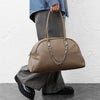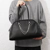 シルバーのチェーンときらめきを放つミニポーチが付属したボストンバッグ。シボ感のあるフェイクレザーを使用し、高級感を感じられる仕様に。大容量ながらも使いやすいサイズ感で1泊2日の旅行や日常使いなど幅広く活躍してくれるバッグです。