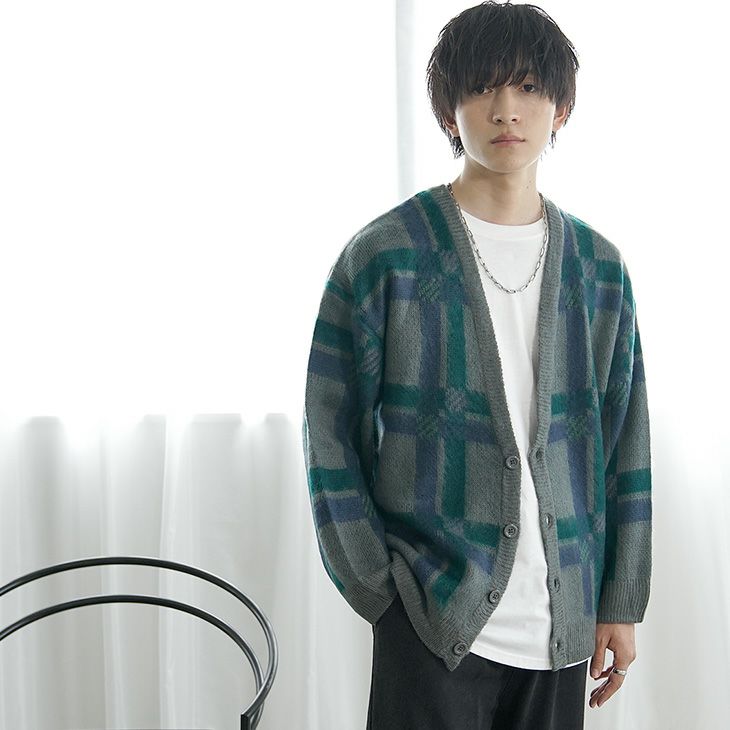 モヘアタッチジャガードチェックカーディガン