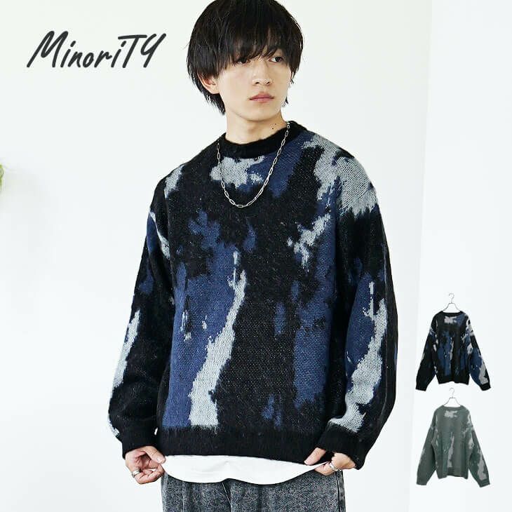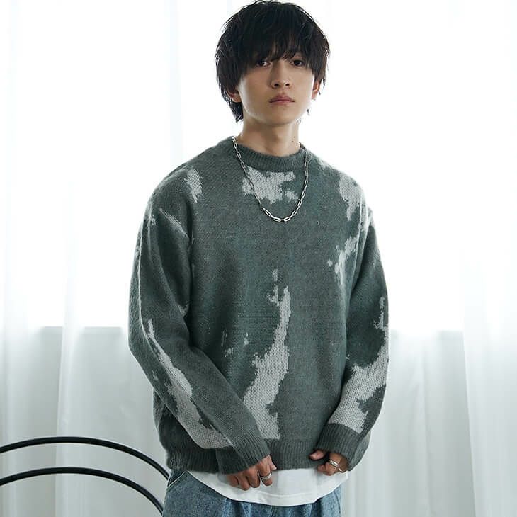 モヘアタッチニュアンス柄ルーズニット