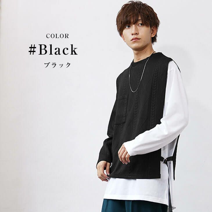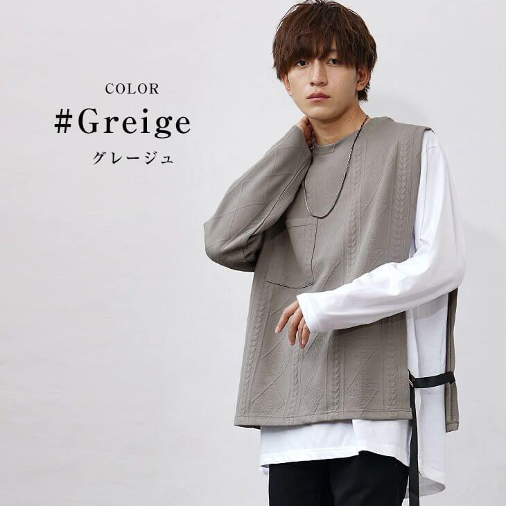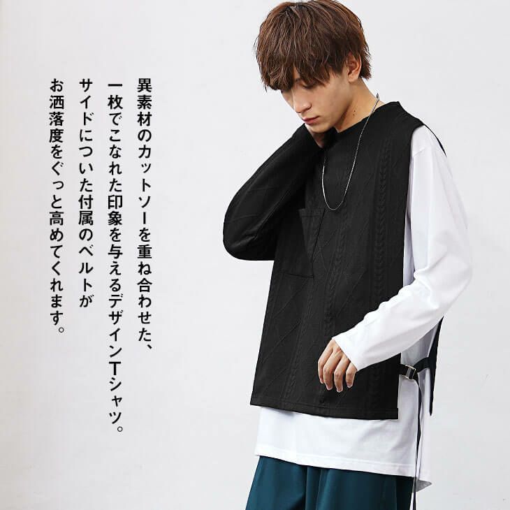 【重ね着風】ケーブルレイヤードカットソー
