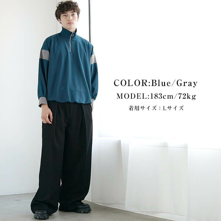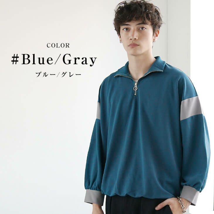 【送料無料】バイカラースタンドハーフジップ
