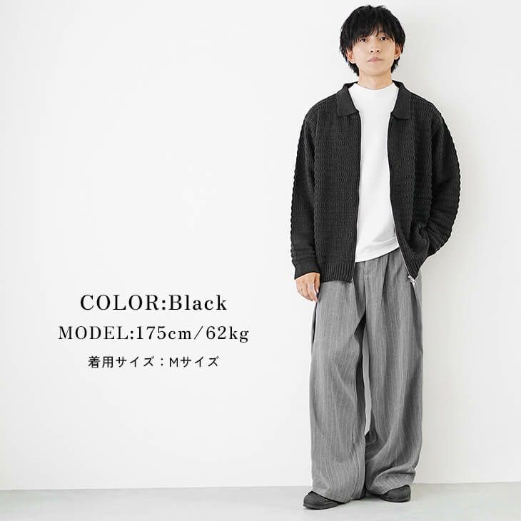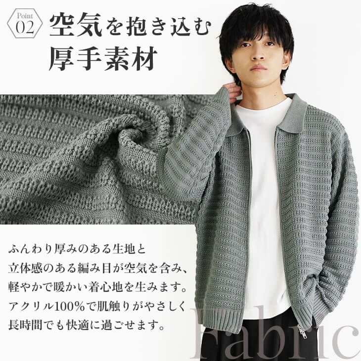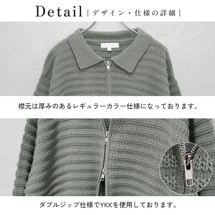 テクスチャードダブルジップニットポロ