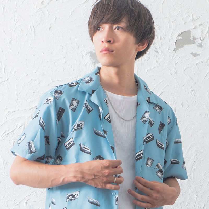 柄シャツは子供っぽくならないように大人の味付けを。