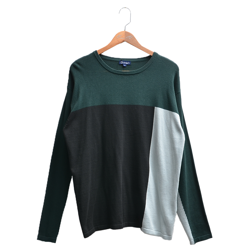 大胆に3色で切り替えたデザインニット。