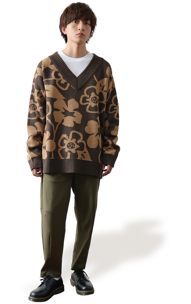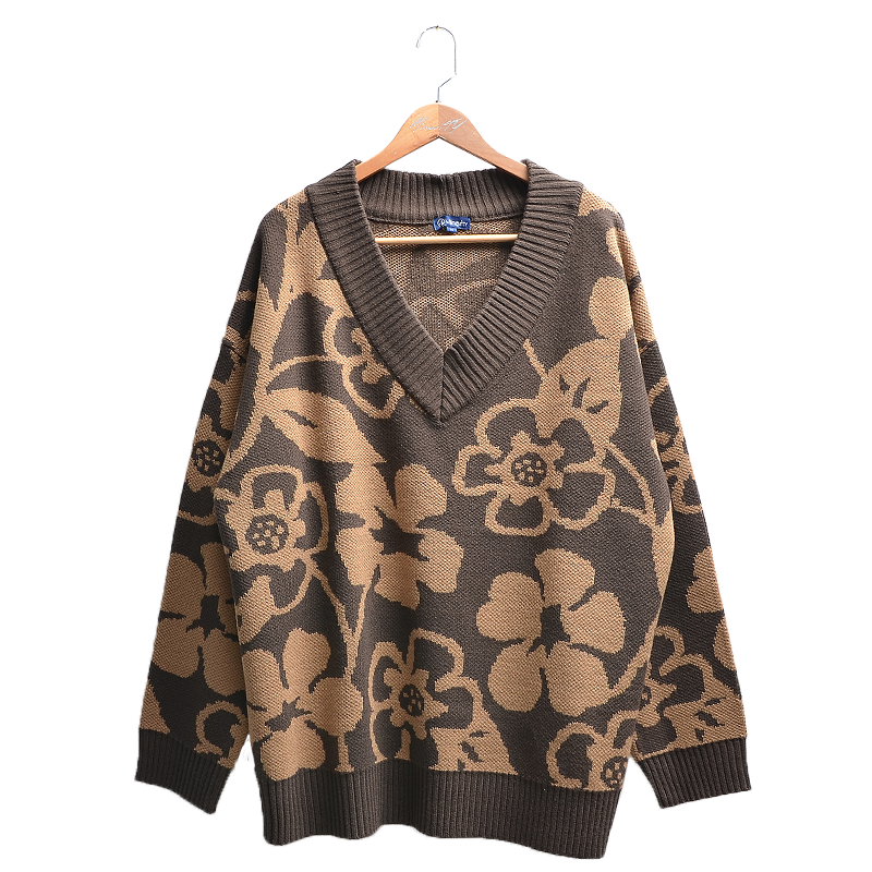大胆な花柄模様をあしらったニット。