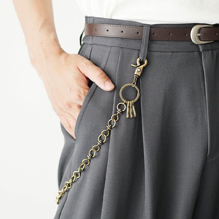 チェーンの付け位置や長さを誤ると歩行時や座る際に引っかかり、不快感や動きづらさを感じてしまいます。 実際に動いて確認しながら位置を調整することが、見た目と快適さの両立につながります。
