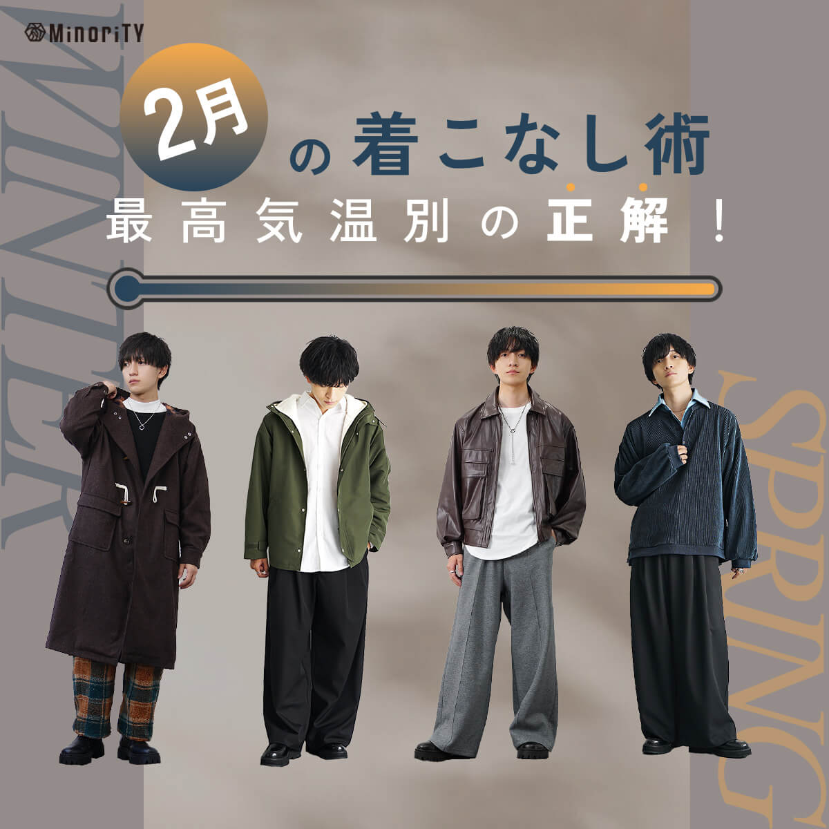 こんにちは、MinoriTYブランドディレクターのさとるです!ここでは1月の服装について、何を着るべきか厳選アイテムからコーディネートまでシーン別に詳しく紹介していきます。