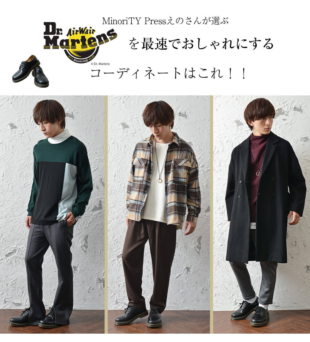 革靴と言えば、な定番アイテム。 コーデ初心者~上級者まで幅広い方に支持され、トレンドに流されないロングセラーアイテムです。 何といっても「エアークッションソール」と呼ばれる、ドイツのお医者さんが開発した歩きやすさと身長アップ効果の一挙両得なアイテム。 革靴ですが、どことなくストリートな印象です。