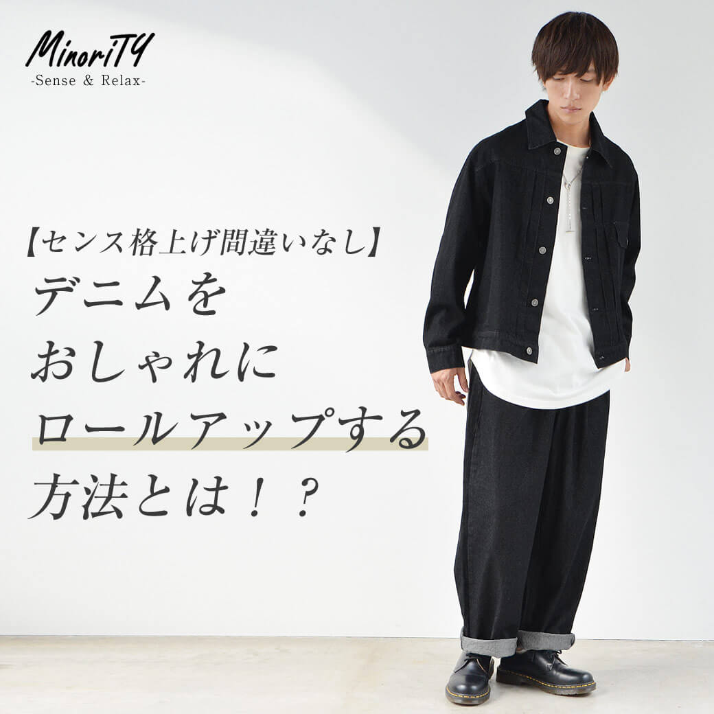 最近のトレンドとして、デニムもスキニータイプからワイドタイプに移っていますね。 ダボダボした太めのデニムは、今っぽさがあってかっこいいアイテムですが、裾に生地がたまりすぎるものだと脚が短く見えたり、野暮ったい印象に、、、 そんな時裾をロールアップすることで、スッキリした清潔感が生まれるだけでなく、スタイルアップも叶えてくれます◎ ワイドデニムは、シンプルなTシャツ1枚に合わせるだけでもオシャレ見え確実な優秀アイテムなので、使いやすさ抜群のボトムスです!