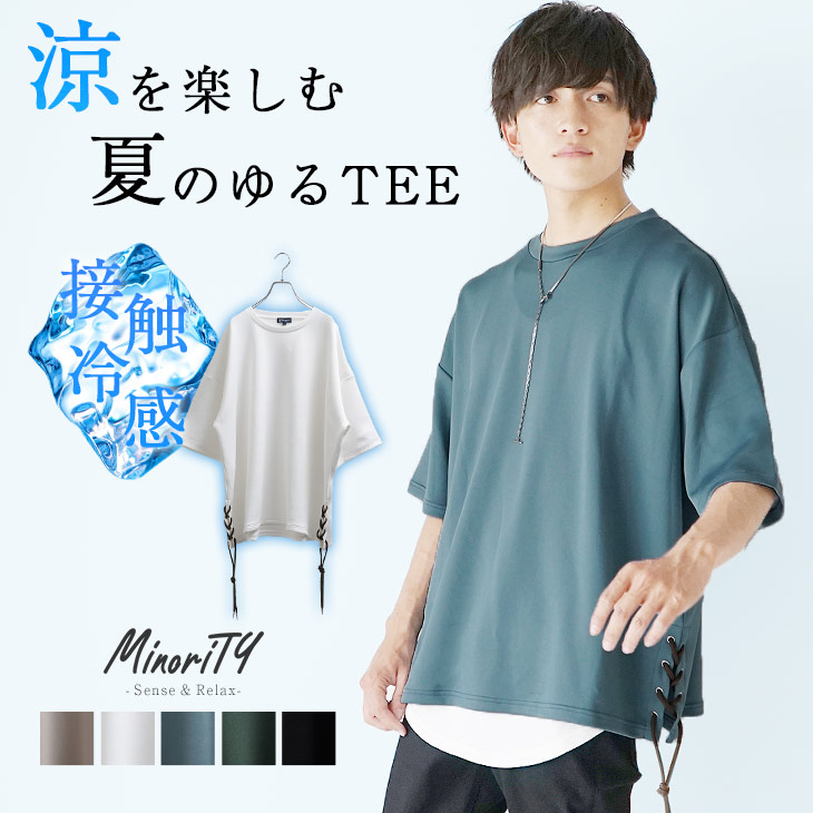夏に嬉しい接触冷感素材を使用したTシャツ。サイドに施されたレースアップがストリートなムードを後押し。スニーカーとの相性も抜群です。