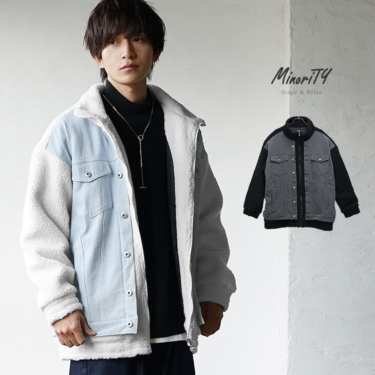 ダボっとしてワイドなシルエットのデニムを使ったストリート系のスタイルにはエアフォース1が相性抜群! 上下ともにオーバーサイズをチョイスし、少しダボっとするくらいがカッコいい着こなしのポイントです◎ アウターのデニムボアジャケットは、中に着込んでも十分ゆとりのあるゆったりサイズなので、冬でも大活躍間違いないしなカジュアルアウターです。