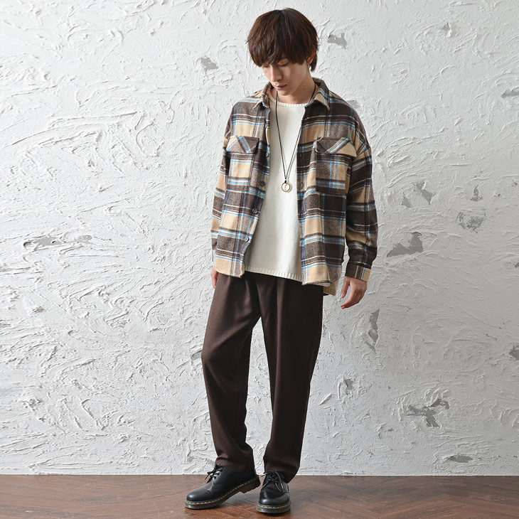 次にコートと合わせるアイテムの問題。 コートに対して、最も着こなしに影響してくるのが「パンツ」です。 ロングコートは下半身にボリュームが出るため目線が下に集まりやすくなりますので、合わせるパンツにワイドパンツなどさらにボリュームのあるものを選んでしまうと目線が完全に下に集まってしまい、スタイルが悪く見え、「ロングコートが似合わない」という印象に陥ってしまいます。 そのため、合わせるパンツにはなるべくボリュームの少ないものを選び、抜け感を出してあげることが重要です。