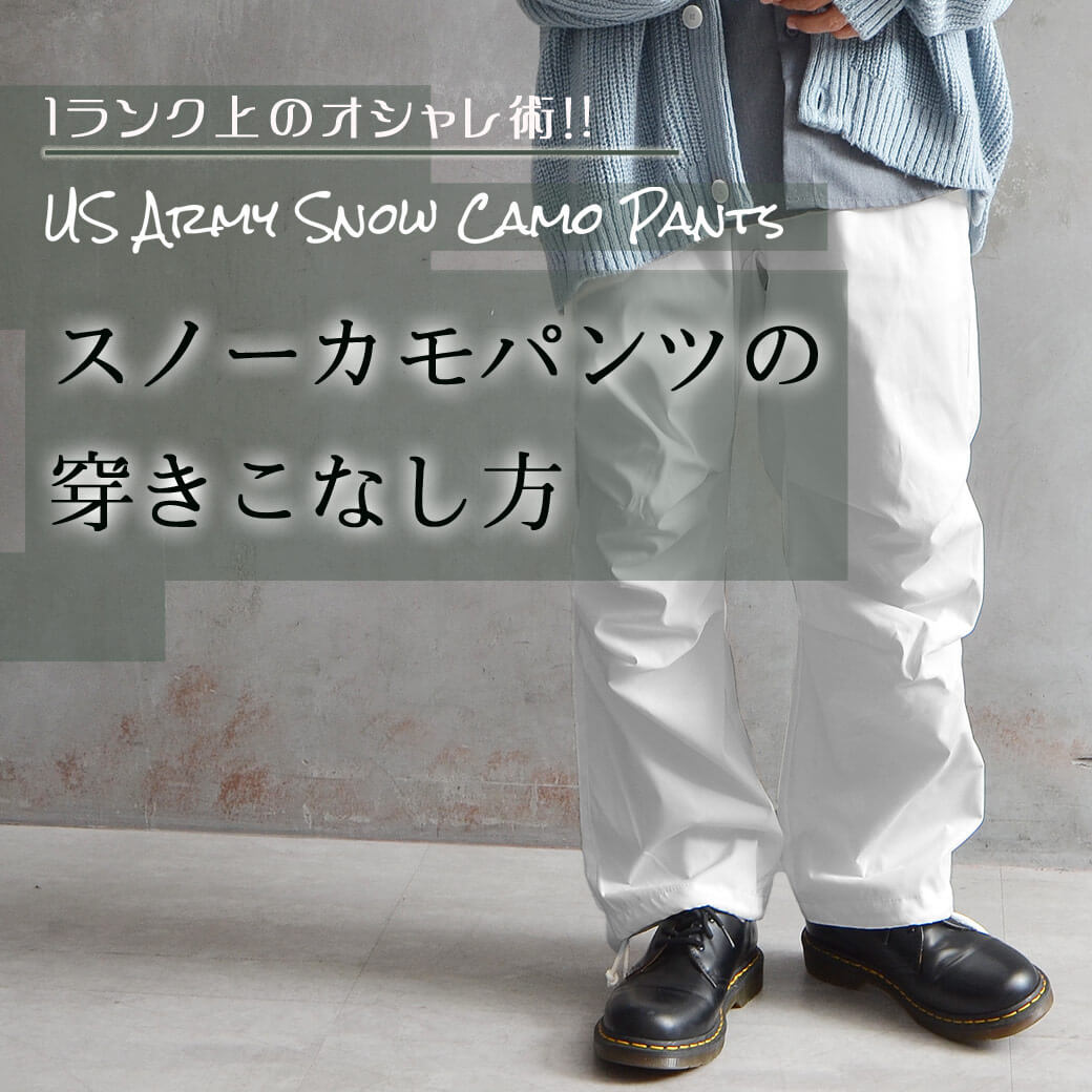 ミリタリーアイテムは流行り廃りがなく、今ではオシャレに着こなすアイテムとして認識されています。上記の画像からもスノーカモパンツのイメージがガラッと変わったのではないでしょうか。オシャレは無限ですね。