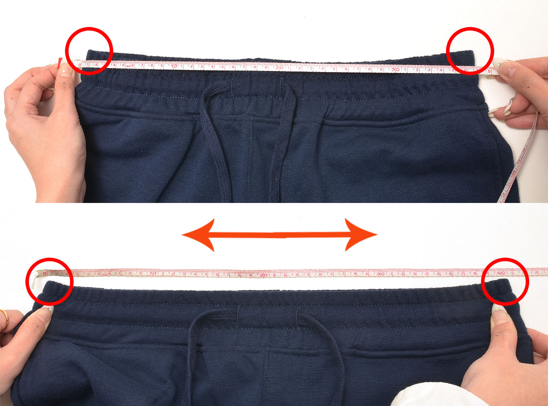 ウエスト部分の上端を前後で揃えた際の、左右の長さの2倍。