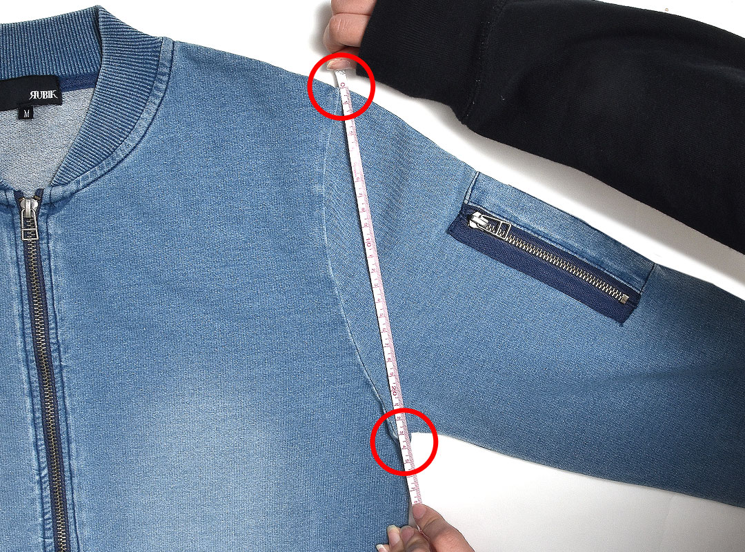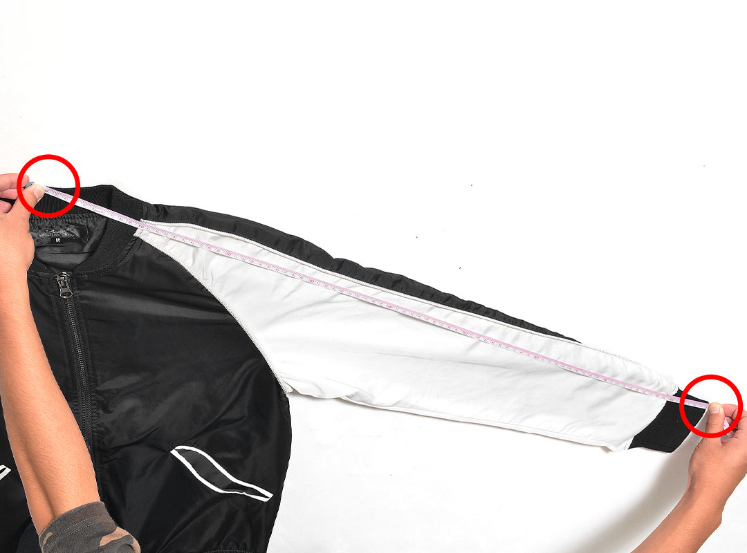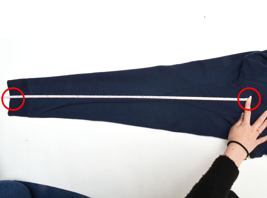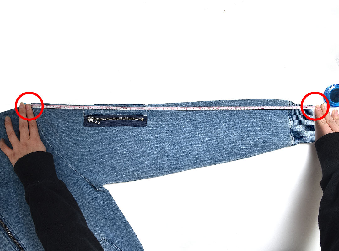 肩の縫い合わせから、袖口まdでの直線の長さ。